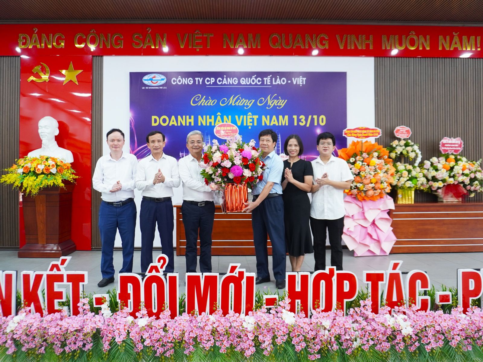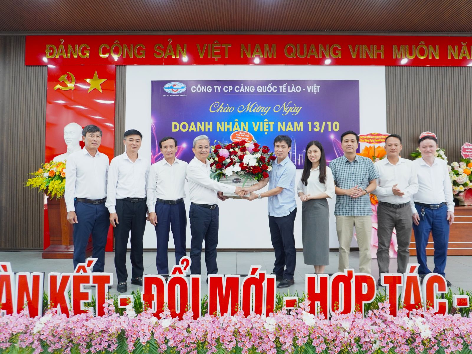 Nhân kỷ niệm Ngày Doanh nhân Việt Nam 13/10, Công ty CP Cảng Quốc tế Lào - Việt đã vinh dự đón tiếp nhiều cơ quan quản lý nhà nước; đơn vị; quý khách hàng, đối tác đến tặng hoa và gửi lời chúc mừng tốt đẹp tới Ban lãnh đạo cùng tập thể người lao động Công ty.