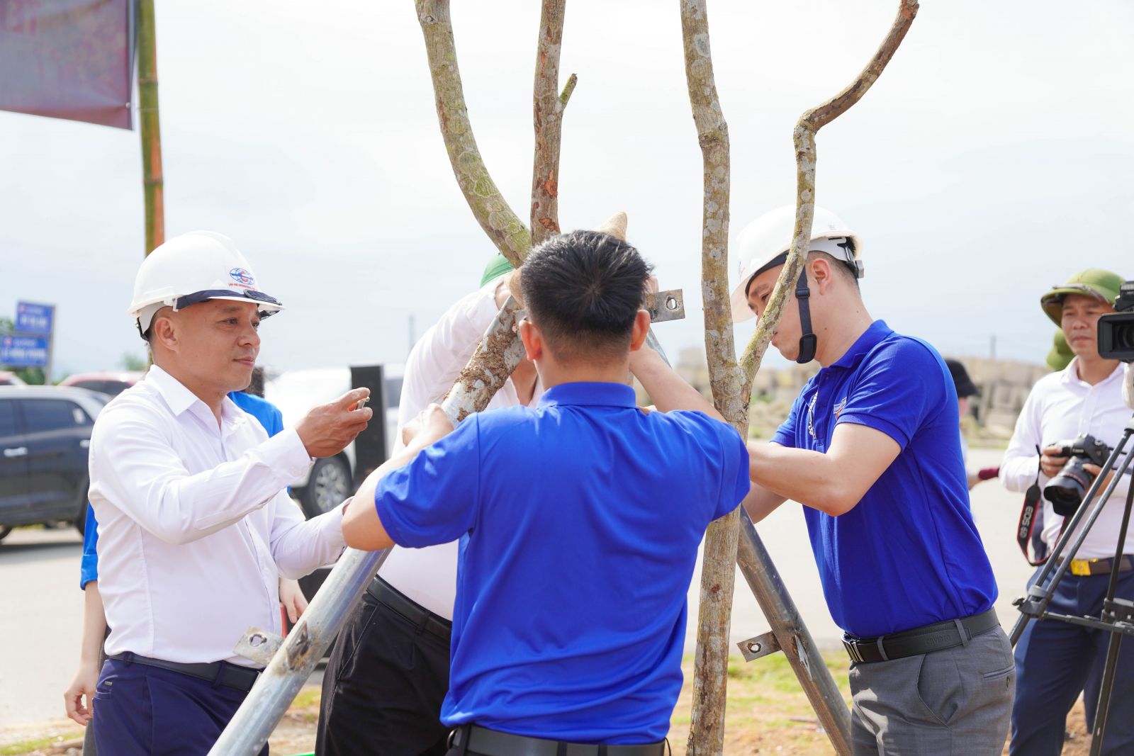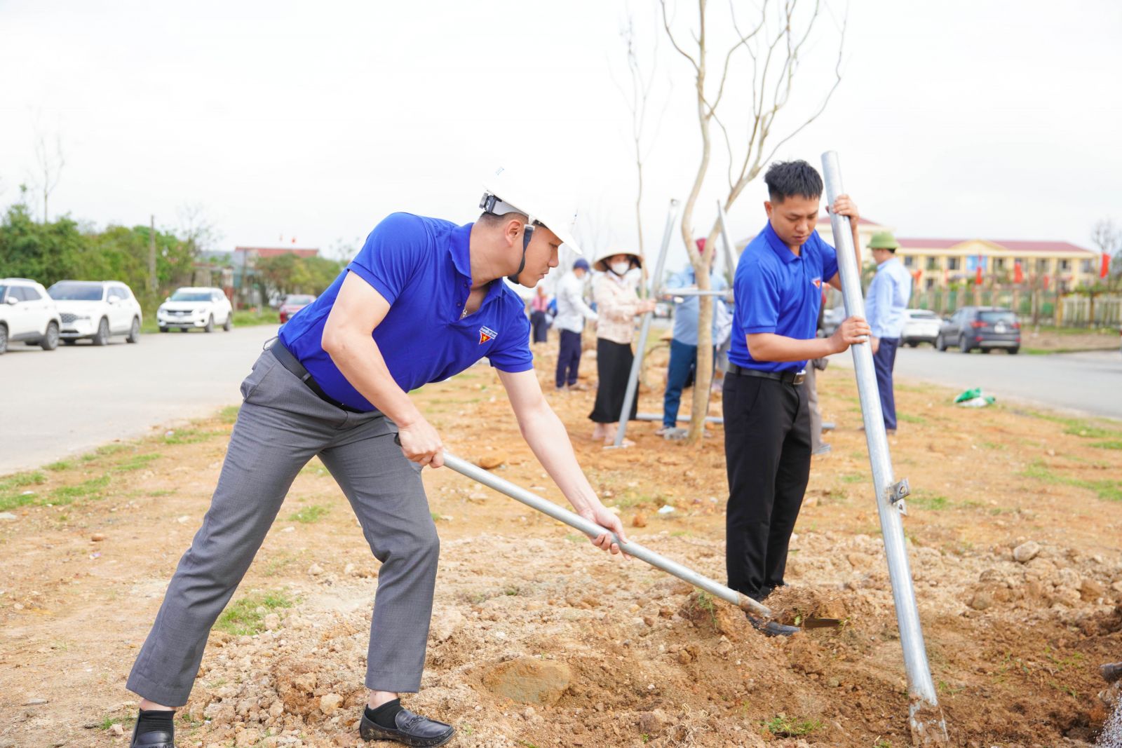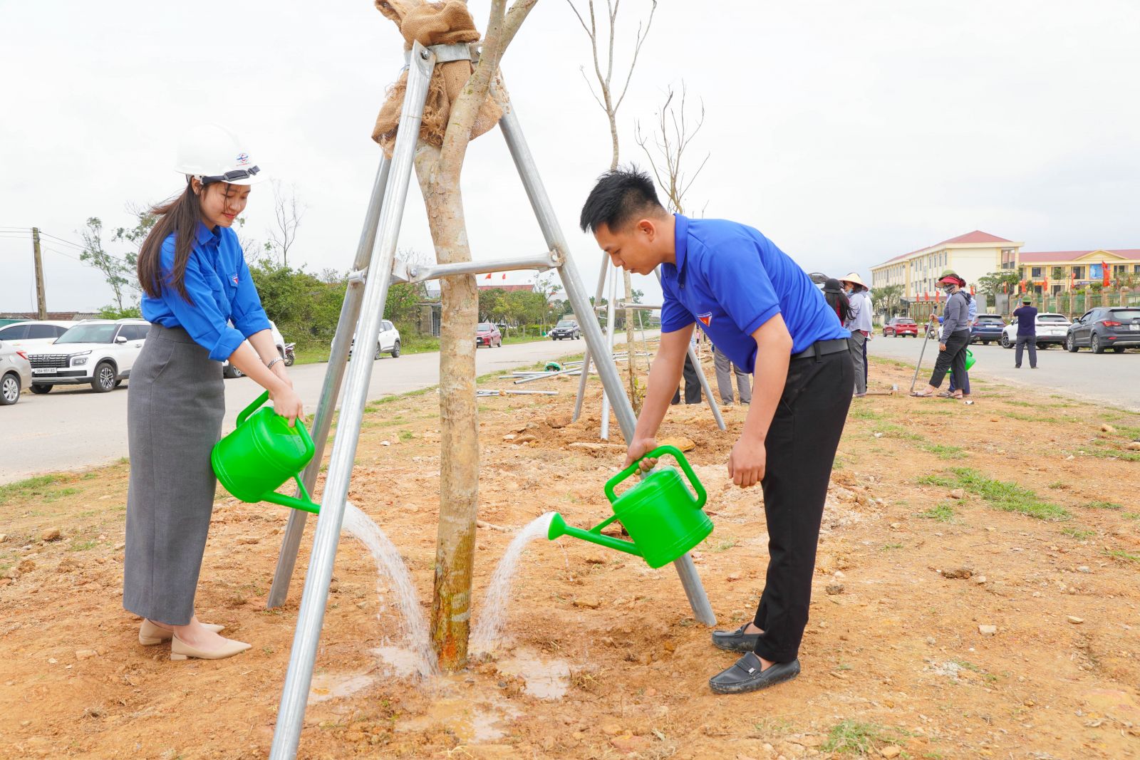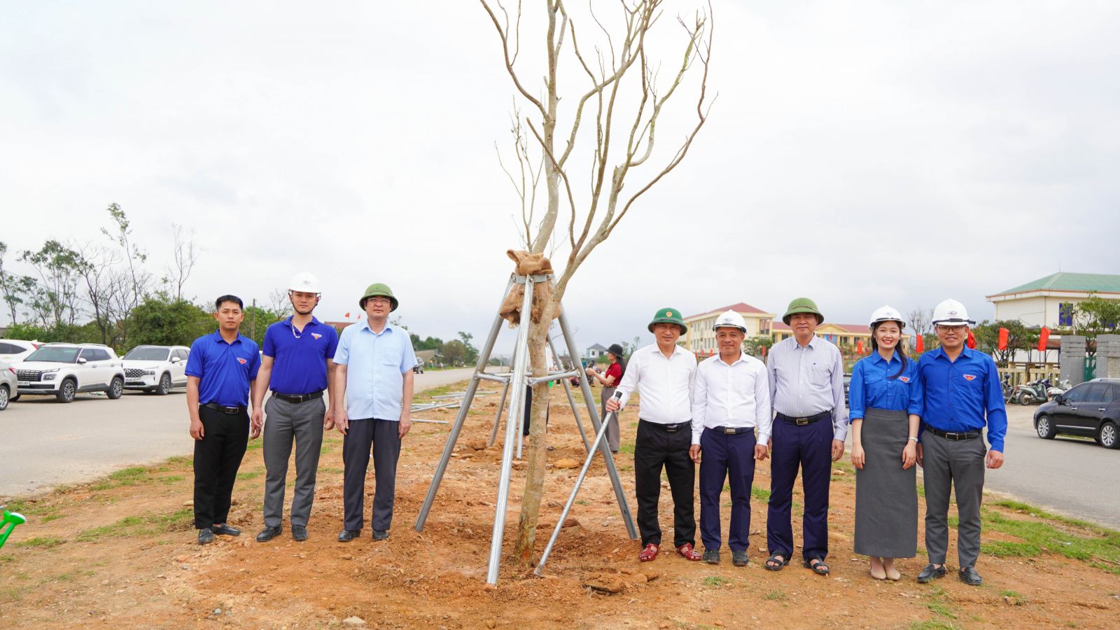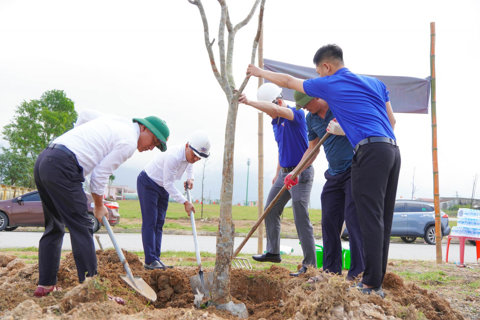 Đồng chí Phạm Quốc Lượng - Bí thư chi bộ, Phó giám đốc; Đoàn thanh niên Công ty và Lãnh đạo Phường Vũng Áng cùng tham gia trồng cây