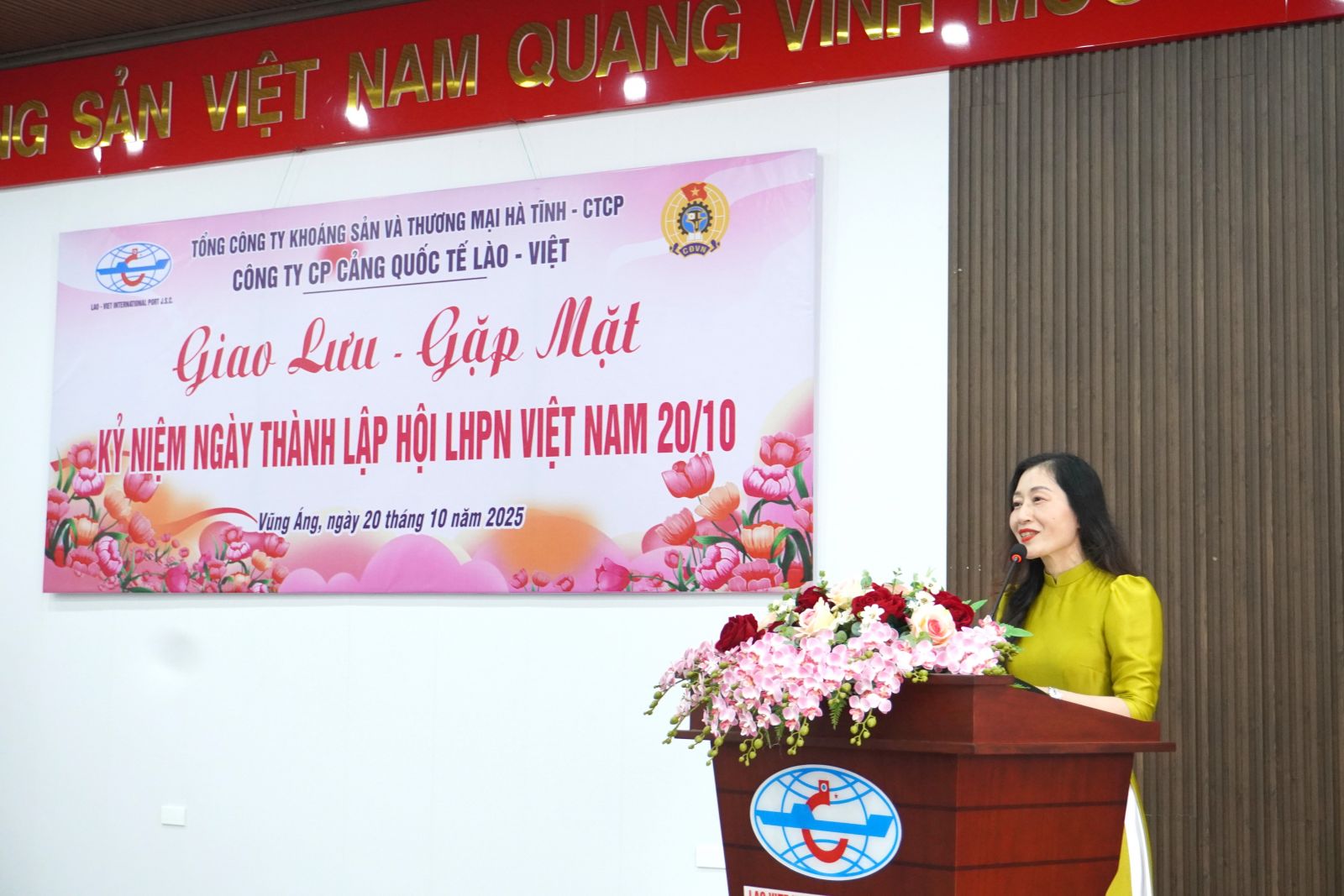 Bà Trương Ngọc diệp - Trưởng ban Nữ công đã ôn lại ý nghĩa lịch sử ngày 20/10, đồng thời gửi lời cảm ơn đến Ban Lãnh đạo đã luôn quan tâm để chị em phụ nữ phát triển, khẳng định vai trò và vị thế của chị em trong công việc cũng như trong cuộc sống.