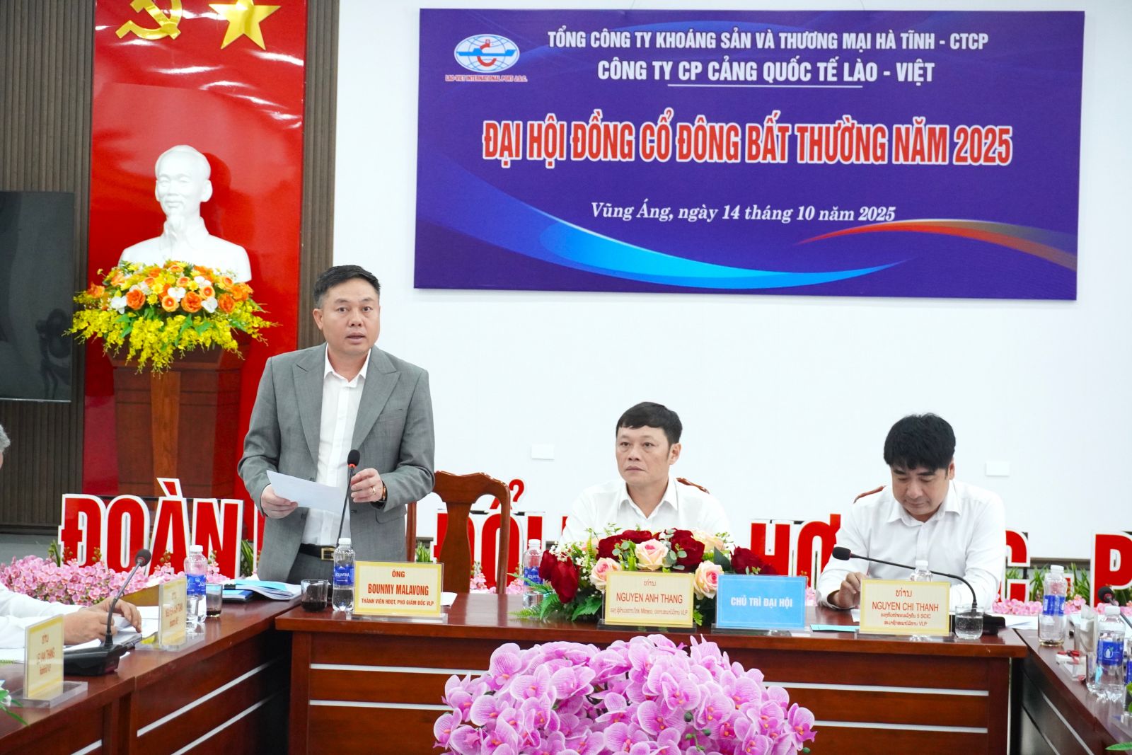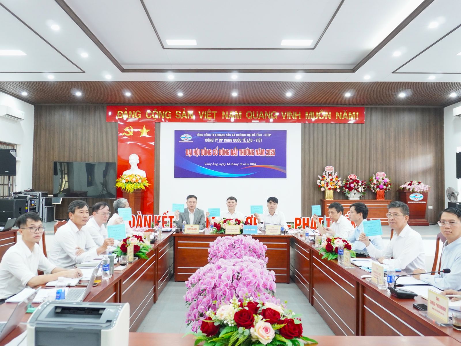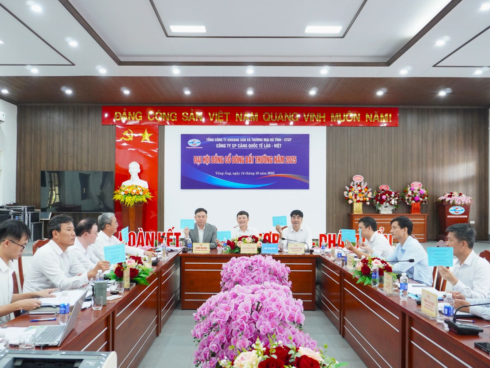 Sáng ngày 14/10/2025, Công ty CP Cảng Quốc tế Lào - Việt (VLP) đã tổ chức Đại hội đồng cổ đông bất thường (ĐHĐCĐ) năm 2025. Chủ trì Đại hội: ông Nguyễn Anh Thắng - Phó Tổng Giám đốc Tổng Công ty Khoáng sản và Thương mại Hà Tĩnh (Mitraco), Chủ tịch Hội đồng quản trị (HĐQT) VLP; đồng chủ trì gồm: ông Bounmy MALAVONG - Thành viên HĐQT, Phó Giám đốc VLP; ông Nguyễn Chí Thành - Thành viên HĐQT. Đại hội đã thông qua một số nội dung quan trọng liên quan đến hoạt động sản xuất kinh doanh của Công ty trong thời gian sắp tới.