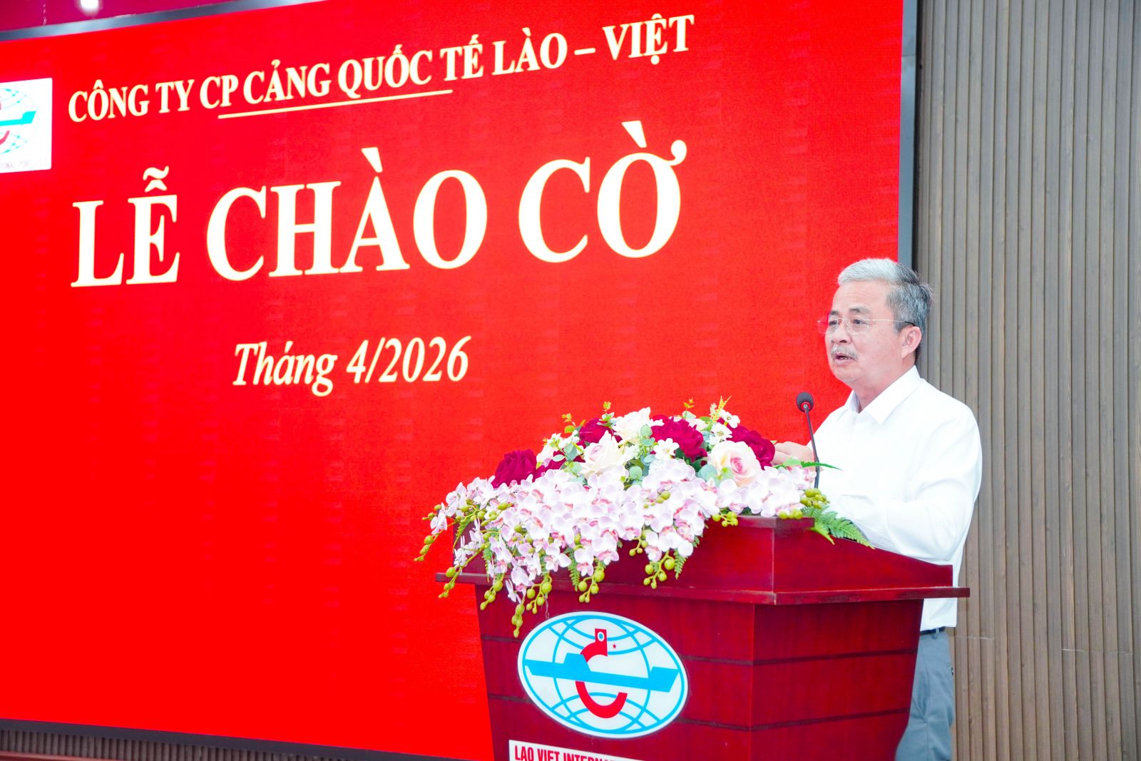 Sáng ngày 01/4, tại Hội trường, Công ty CP cảng Quốc tế Lào - Việt tổ chức Lễ chào cờ tháng 4 năm 2026 và Phát động Phong trào thi đua “90 ngày đêm” lập thành tích chào mừng Kỷ niệm 51 năm Ngày Chiến thắng (30/4/1975 - 30/4/2026); 140 năm Ngày Quốc tế Lao động (01/5/1886 - 01/5/2026) và 136 năm Ngày sinh Chủ tịch Hồ Chí Minh (19/5/1890 - 19/5/2026) (Từ ngày 01/4/2026 đến 30/6/2026). Tham dự buổi lễ có các đồng chí trong BCH Chi bộ, BGĐ Công ty, Trưởng, phó các phòng, ban, đơn vị, BCH Công đoàn, BCH Đoàn TN cùng toàn thể người lao động Công ty.