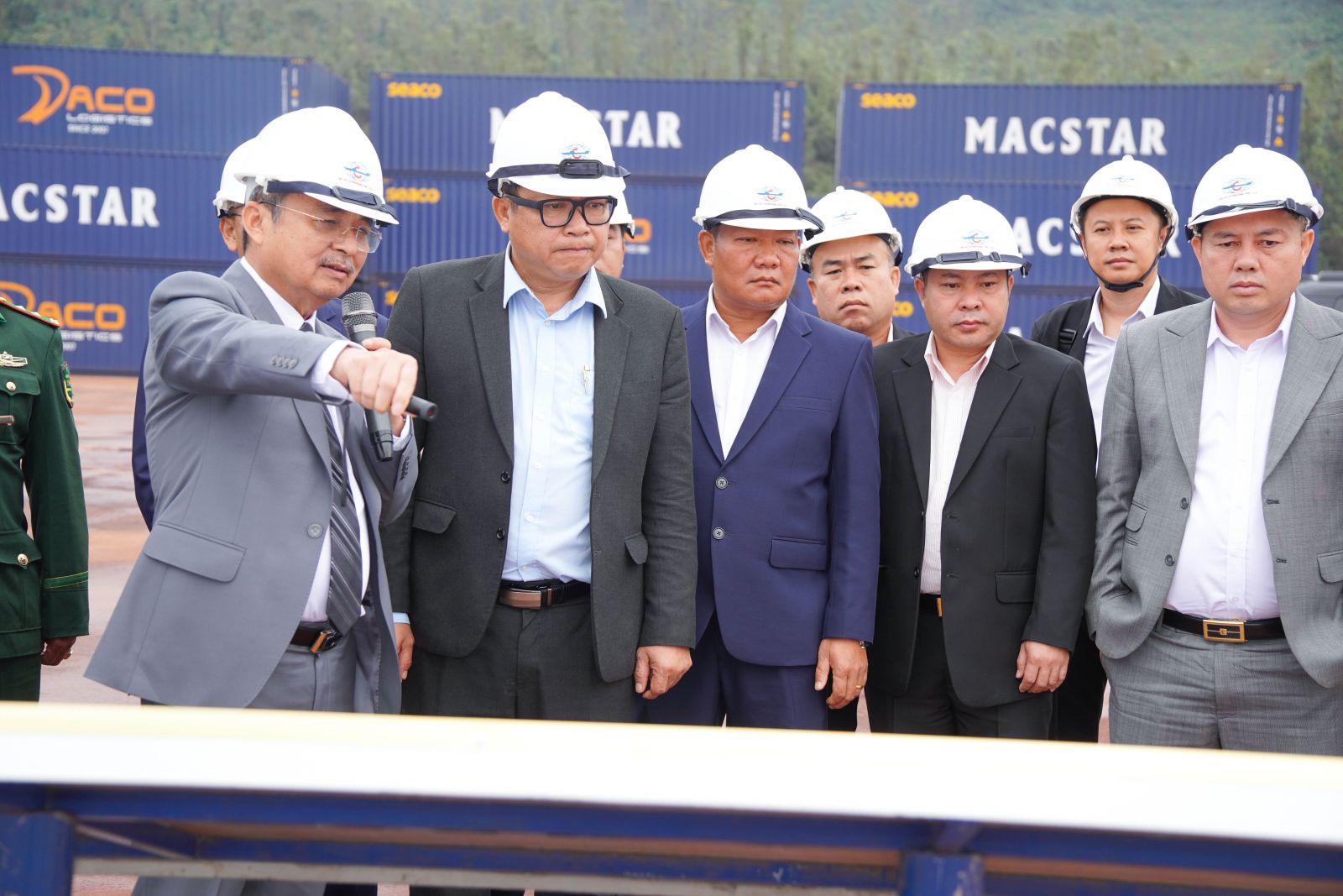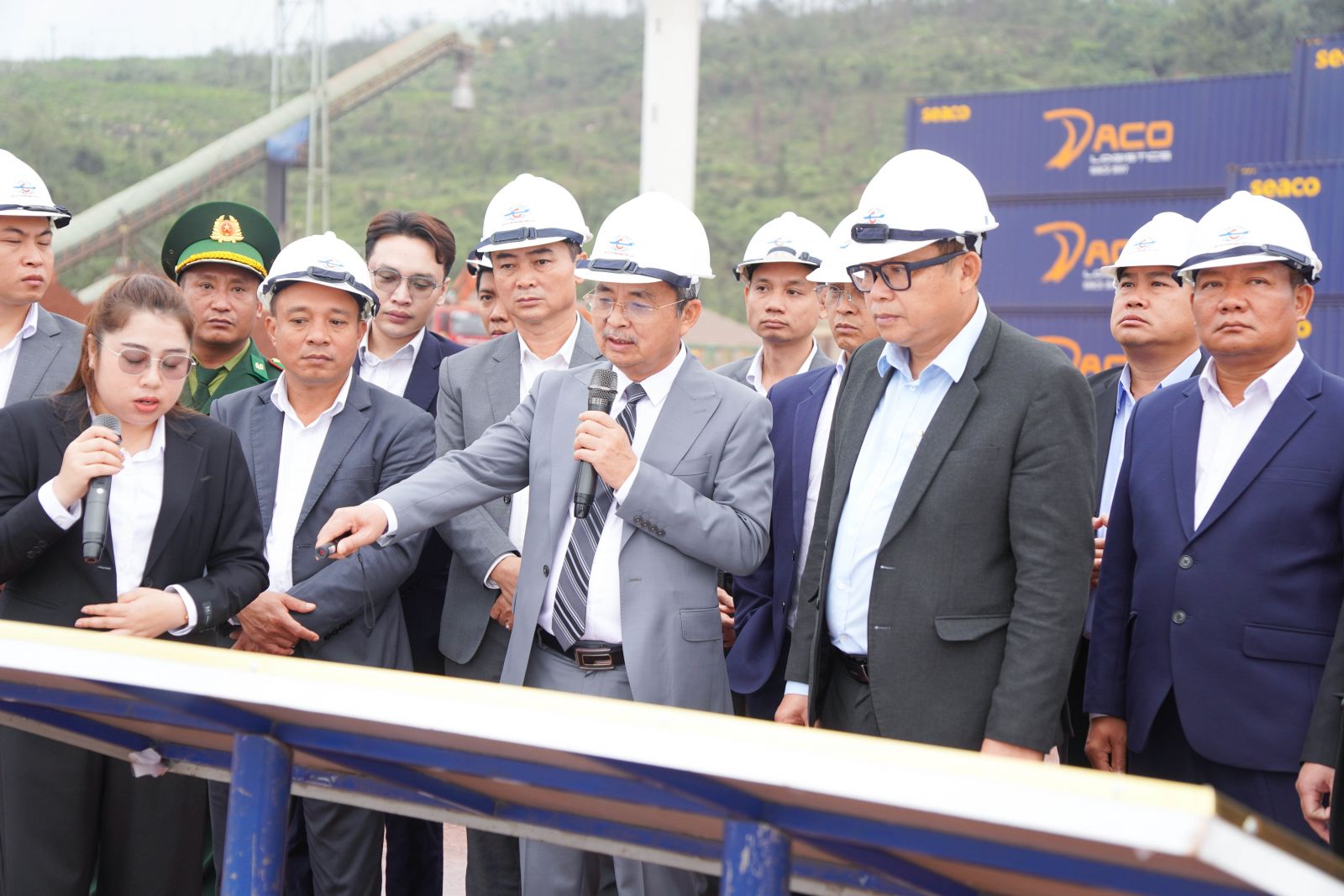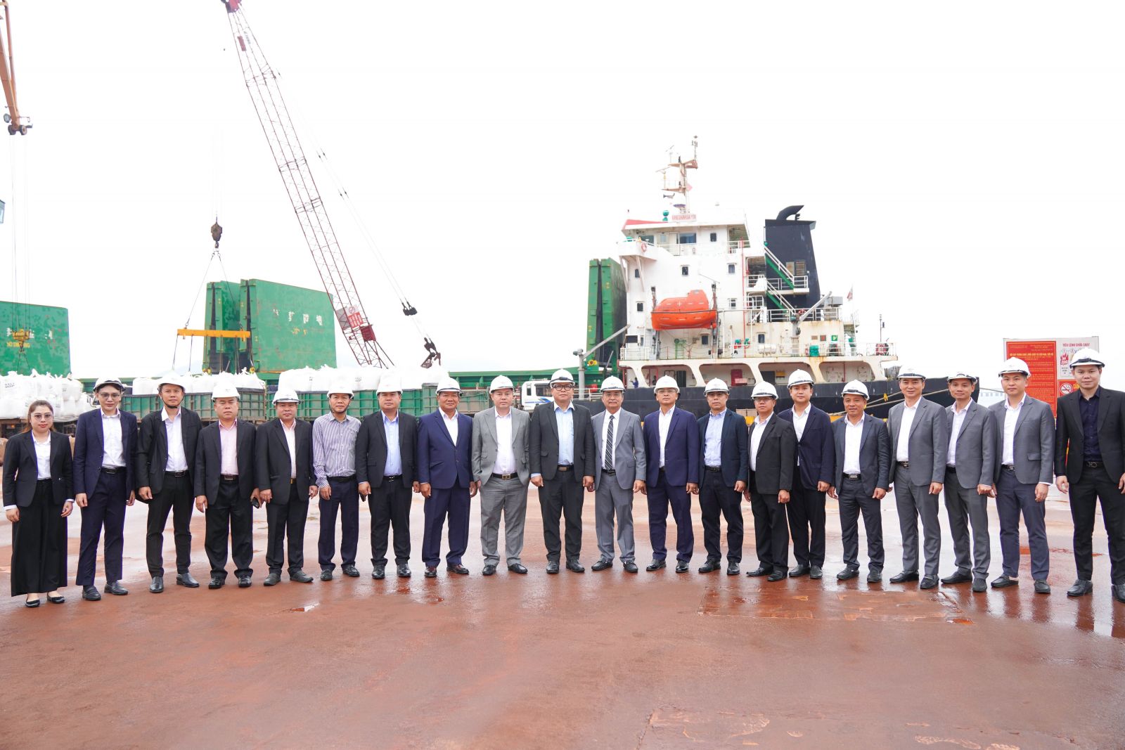 Sau khi làm việc tại văn phòng, đoàn công tác đã đến làm việc tại bến số 1,2 và 3, cảng Quốc tế Lào - Việt, Tại đây, đoàn đã trực tiếp tìm hiểu quy hoạch cảng Vũng Áng, hoạt động xếp, dỡ hàng hóa.