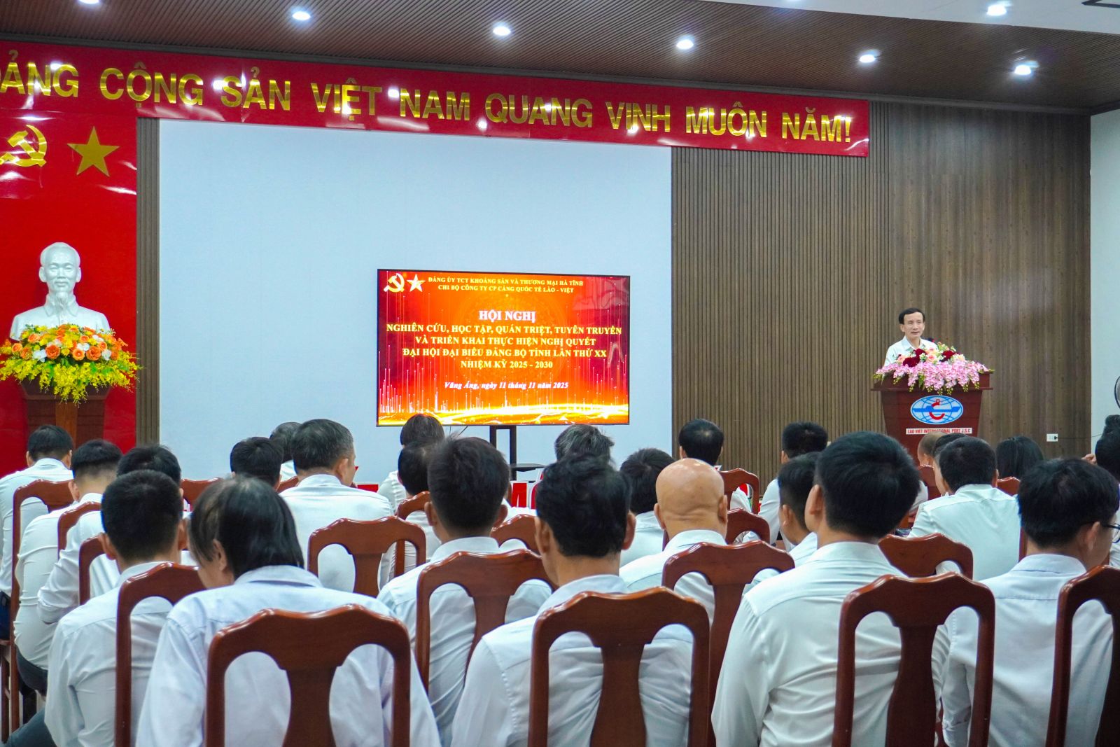 Sáng ngày 11/11, Chi bộ Công ty CP cảng Quốc tế Lào - Việt tham gia Hội nghị nghiên cứu, quán triệt, học tập, tuyên truyền và triển khai thực hiện Nghị quyết Đại hội đại biểu Đảng bộ tỉnh lần thứ XX, nhiệm kỳ 2025 - 2030 do Ban thường vụ Tỉnh uỷ Hà Tĩnh tổ chức.