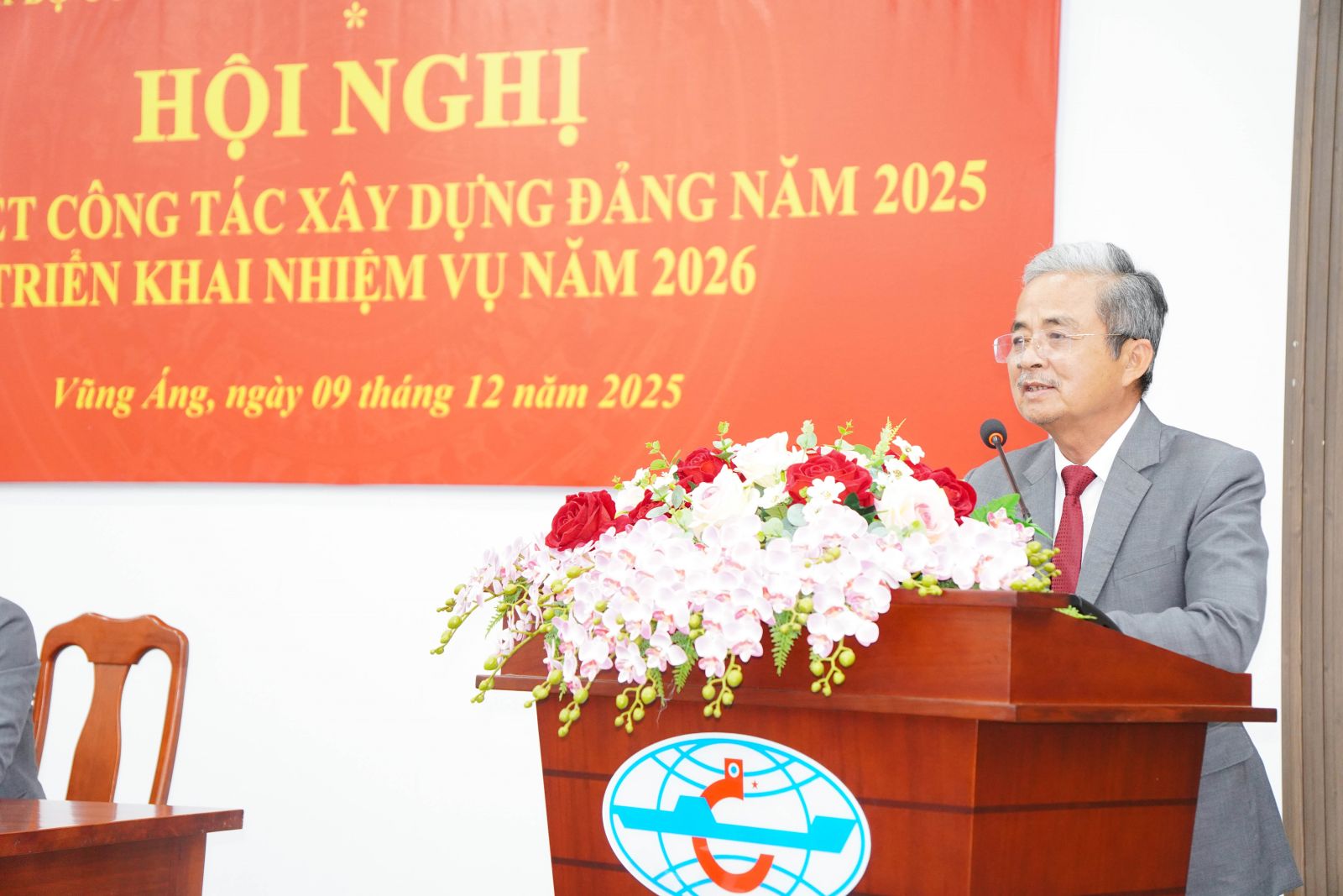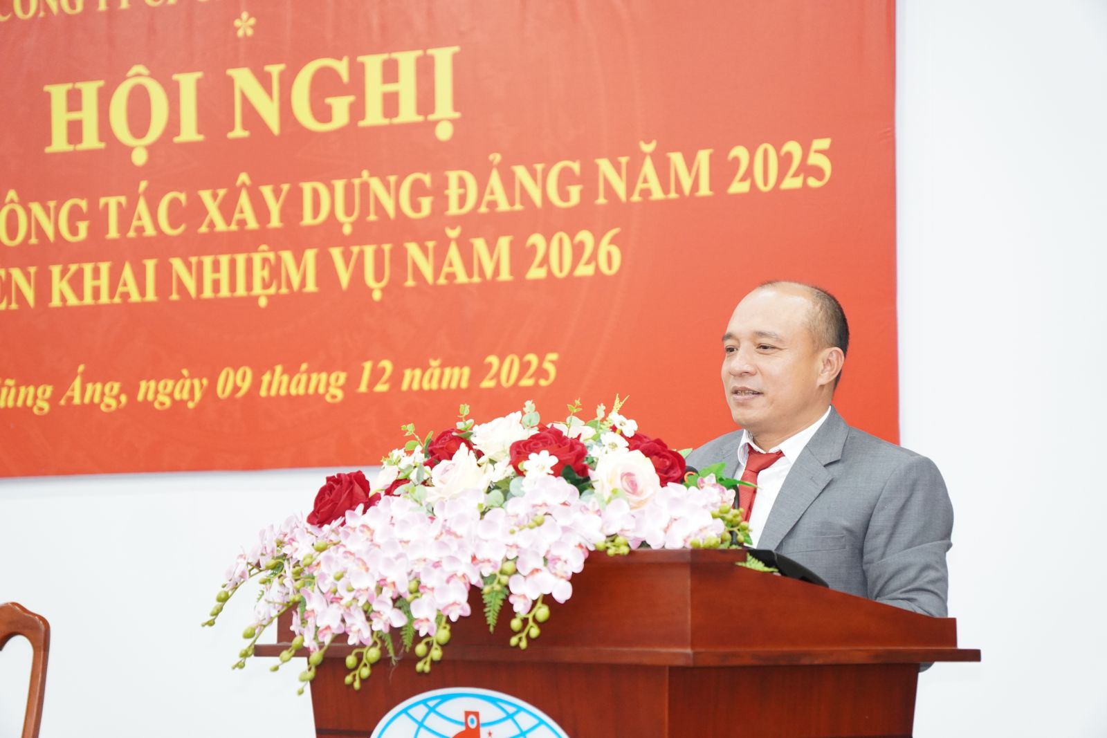 Đồng chí Nguyễn Trinh Cường trình bày báo cáo tổng kết năm 2025; phương hướng nhiệm vụ năm 2026. Báo cáo củng nêu rõ năm 2025 là năm có nhiều khó khăn, biến động, nhưng với tinh thần đoàn kết, Chi bộ giữ vững vai trò hạt nhân chính trị trong doanh nghiệp; kịp thời lãnh đạo, chỉ đạo các phòng ban, đơn vị thực hiện tốt nhiệm vụ chuyên môn; trong năm đã đạt được một số nhiệm vụ rất quan trọng; Bên cạnh đó, Chi bộ đã quan tâm xây dựng đội ngũ cán bộ, đảng viên; tăng cường giáo dục chính trị tư tưởng; thực hiện nghiêm nguyên tắc sinh hoạt Đảng; phát huy dân chủ, đoàn kết nội bộ; làm tốt công tác kiểm tra, giám sát, phát triển đảng viên; thực hiện tốt Quy chế dân chủ ở cơ sở và các phong trào thi đua.