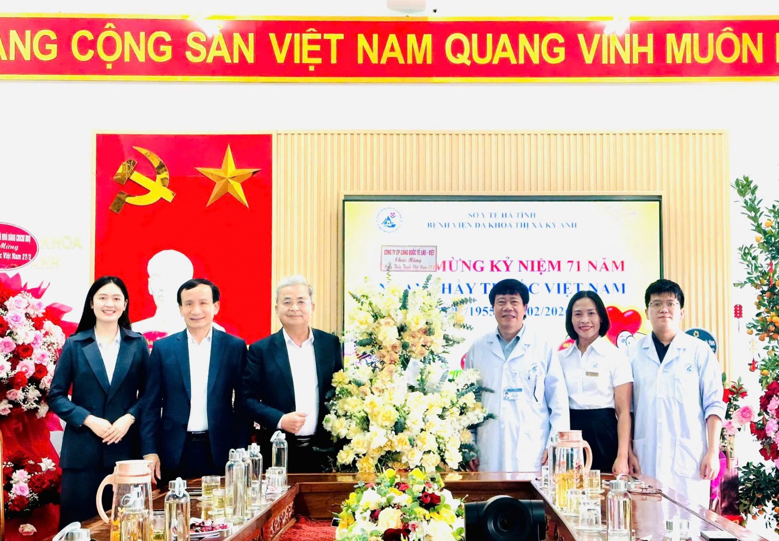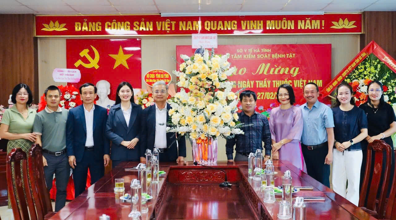 Nhân ngày Thầy thuốc Việt Nam 27/02, sáng ngày 27/02, đồng chí Nguyễn Anh Tuấn - Giám đốc Công ty đã đến tặng hoa Chúc mừng Bệnh viện Đa khoa tỉnh Hà Tĩnh; Trung tâm Kiểm soát bệnh tật Hà Tĩnh (CDC); Bệnh viện Đa khoa Thị xã Kỳ Anh.