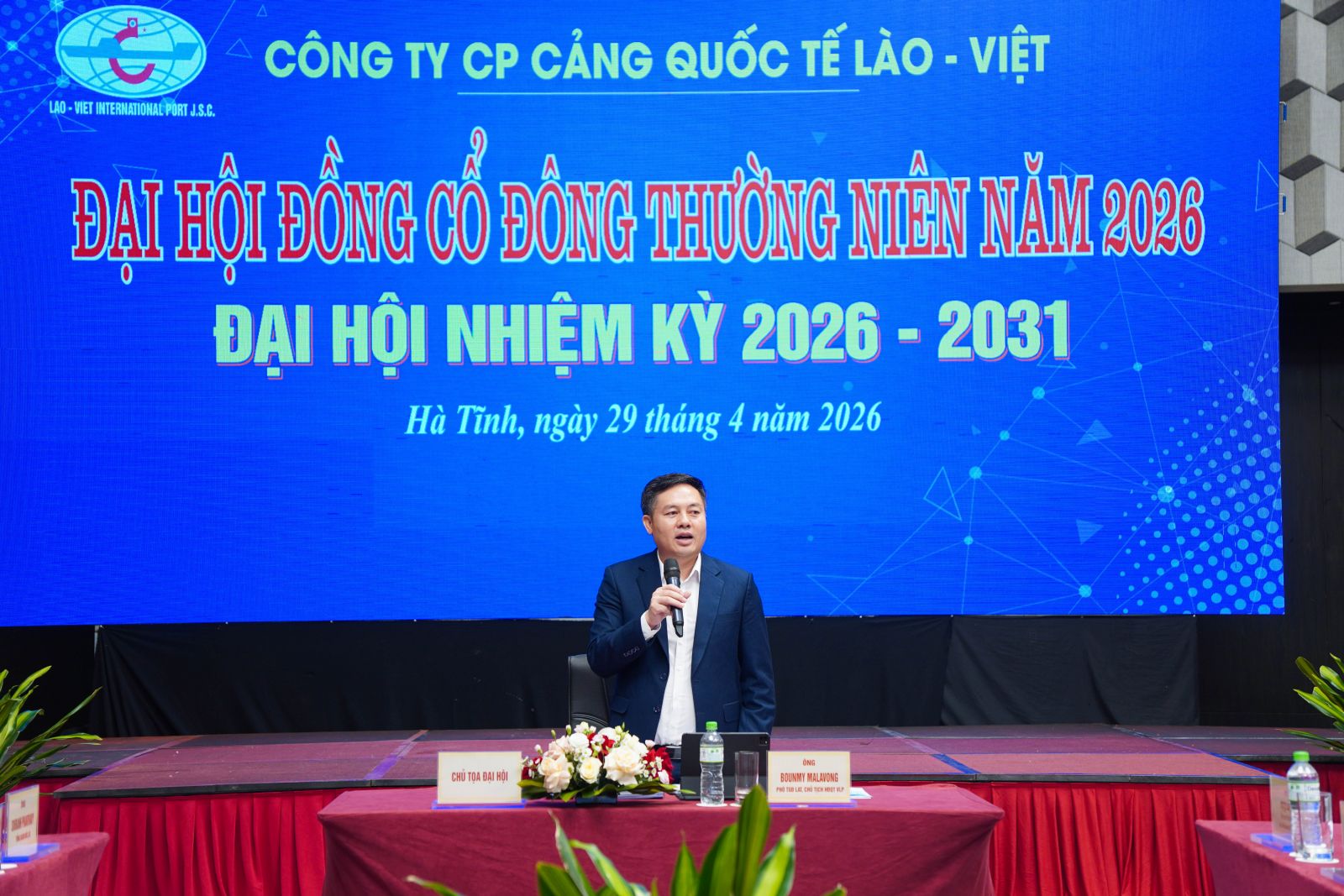 Sáng ngày 29/4/2026, tại khách sạn Mường Thanh Xuân Thành Hà Tĩnh, Công ty CP cảng Quốc tế Lào – Việt (VLP) tổ chức Đại hội đồng Cổ đông thường niên 2026, Đại hội nhiệm kỳ 2026 – 2031. Tham dự Đại hội có ông Soubanh PHANTHAVY - Tổng Giám đốc Công ty Viễn thông Lào – ASIA (LAT); đại diện các cổ đông, thành viên Hội đồng quản trị (HĐQT), Ban kiểm soát (BKS), Ban điều hành và trưởng các phòng, ban liên quan.