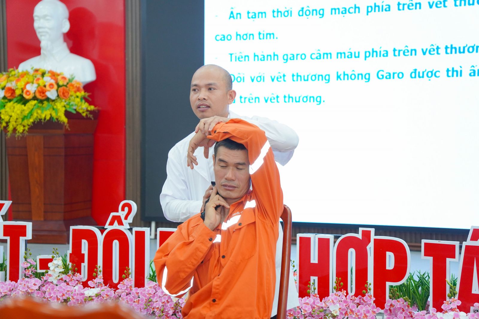 Nhân viên Y tế của Công ty hướng dẫn thực hiện sơ cấp cứu