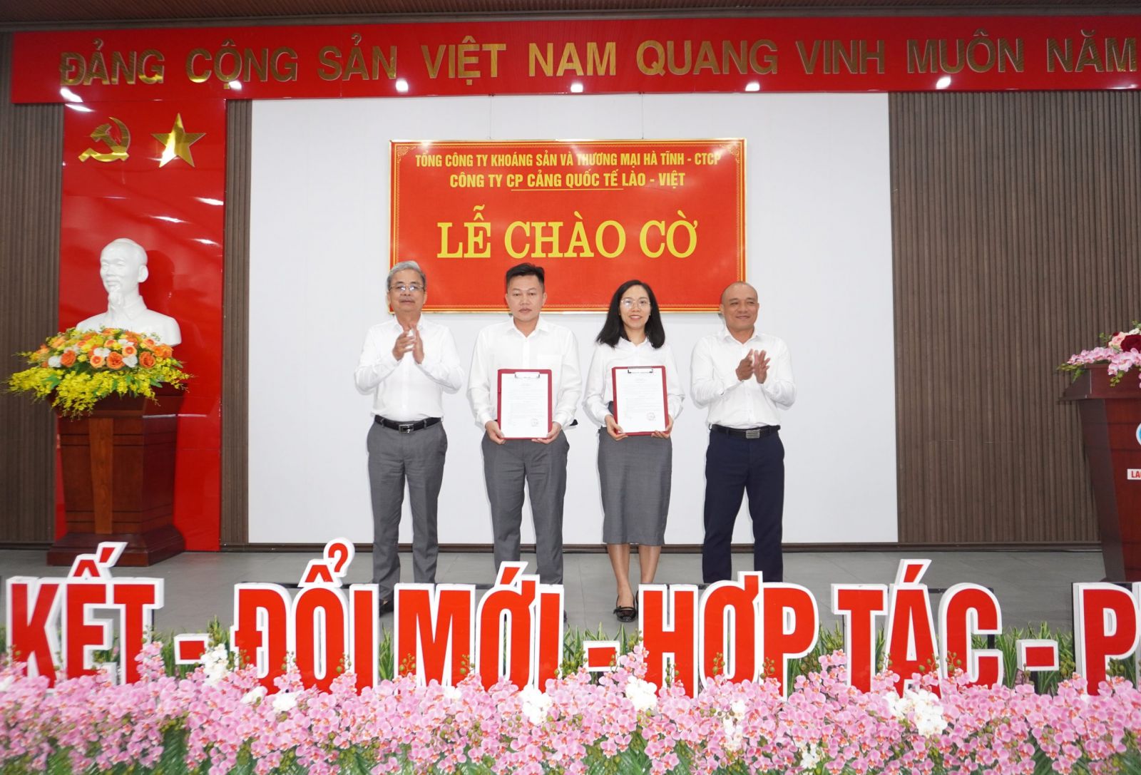 Sáng ngày 05/5, tại Hội trường Công ty CP cảng Quốc tế Lào - Việt, Công ty tổ chức Lễ chào cờ tháng 5 năm 2025, kỷ niệm 139 năm Ngày Quốc tế Lao động (01/5/1886 - 01/5/2025) và phát động Tháng Công nhân năm 2025. Tham dự buổi lễ có các đồng chí trong BCH Chi bộ, BGĐ Công ty, Trưởng các phòng, ban, đơn vị, BCH Công đoàn, BCH Đoàn TN cùng toàn thể người lao động Công ty.