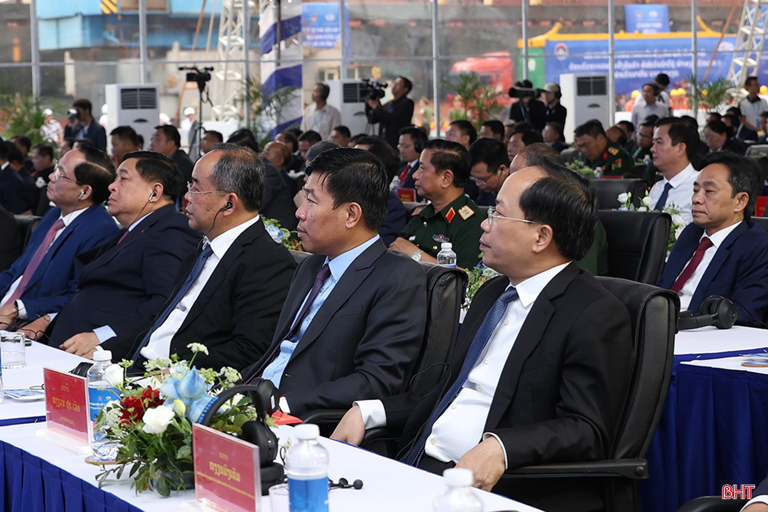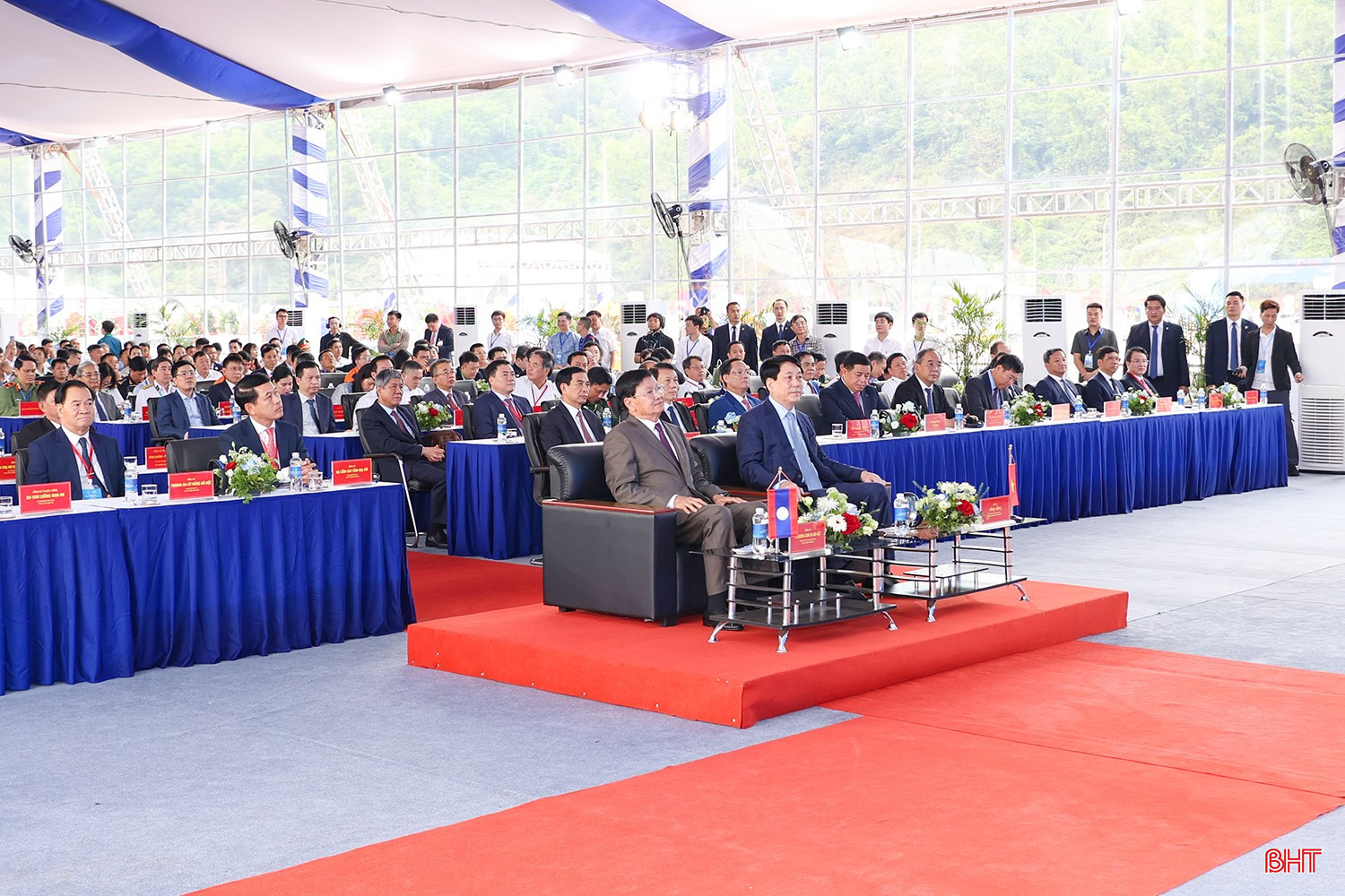 Đồng chí Thongloun Sisoulith - Tổng Bí thư BCH Trung ương Đảng, Chủ tịch nước CHDCND Lào và đồng chí Lương Cường - Chủ tịch nước CHXHCN Việt Nam cùng các đại biểu tham dự lễ khánh thành.