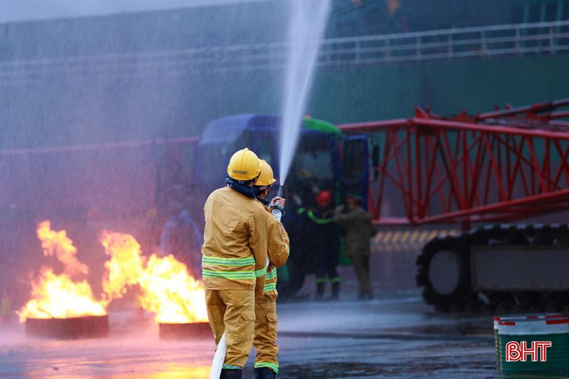 Chiều 30/10, Phòng Cảnh sát Phòng cháy chữa cháy và cứu nạn, cứu hộ (PCCC và CNCH) Công an tỉnh Hà Tĩnh phối hợp với Công ty CP Cảng quốc tế Lào - Việt (KKT Vũng Áng) tổ chức diễn tập phương án cứu nạn, cứu hộ với sự tham gia của nhiều lực lượng, phương tiện chuyên dụng.