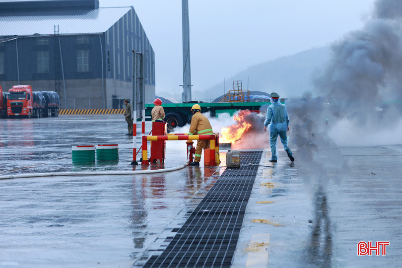 Kết thúc thực tập phương án, Đội Chữa cháy và cứu nạn, cứu hộ khu vực Vũng Áng chủ trì, phối hợp với lực lượng PCCC, CNCH chuyên ngành, cơ sở và các lực lượng liên quan tổ chức rút kinh nghiệm, đánh giá kết quả thực tập phương án hộ theo quy định.