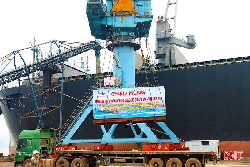 Chiều 24/12, tại Cảng Vũng Áng, Công ty CP Cảng quốc tế Lào - Việt tổ chức chào mừng tấn hàng thứ 5 triệu thông qua cảng năm 2024. Tấn hàng thứ 5 triệu đã đánh dấu mốc mới trong sản xuất, kinh doanh của Công ty CP Cảng Quốc tế Lào - Việt (Khu kinh tế Vũng Áng - Hà Tĩnh) trong năm 2024.