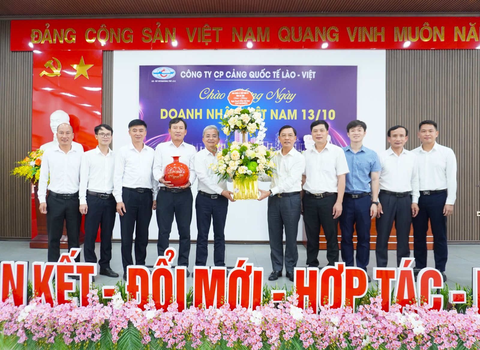 Nhân kỷ niệm Ngày Doanh nhân Việt Nam 13/10, Công ty CP Cảng Quốc tế Lào - Việt đã vinh dự đón tiếp nhiều cơ quan quản lý nhà nước; đơn vị; quý khách hàng, đối tác đến tặng hoa và gửi lời chúc mừng tốt đẹp tới Ban lãnh đạo cùng tập thể người lao động Công ty.