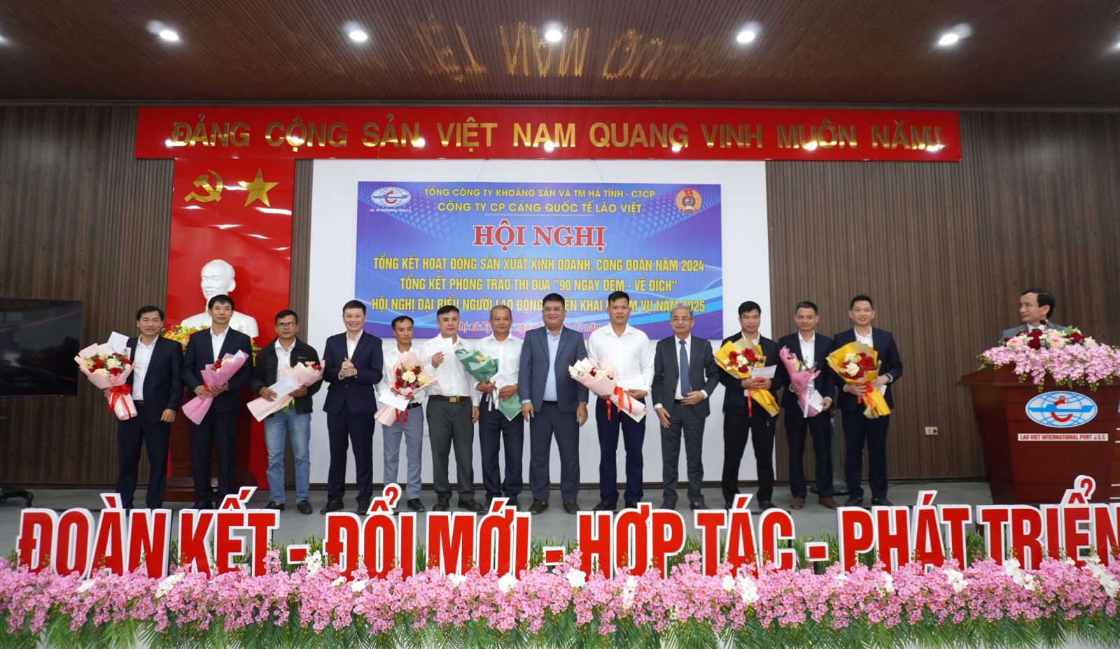 Sáng ngày 12/12/2024, tại Hội trường Công ty CP cảng Quốc tế Lào - Việt, Công ty tổ chức Hội nghị tổng kết hoạt động SXKD, Công đoàn năm 2024, Tổng kết phong trào "90 ngày đêm - về đích", Hội nghị Đại biểu người lao động, triển khai nhiệm vụ năm 2025. Tham dự Hội nghị về phía Tổng Công ty có: Ông Lê Viết Thảo - Bí thư Đảng ủy, Tổng Giám đốc Tổng Công ty, ông Nguyễn Anh Thắng - Phó Tổng Giám đốc, Chủ tịch HĐQT Công ty cùng các đồng chí trưởng các phòng, ban, đơn vị Tổng Công ty.