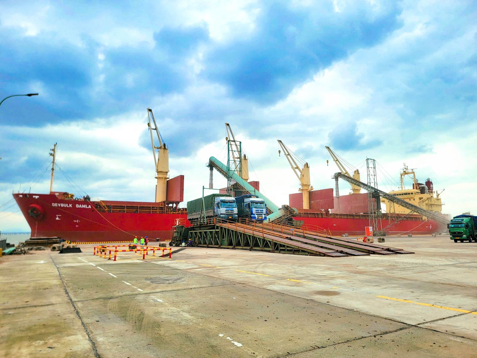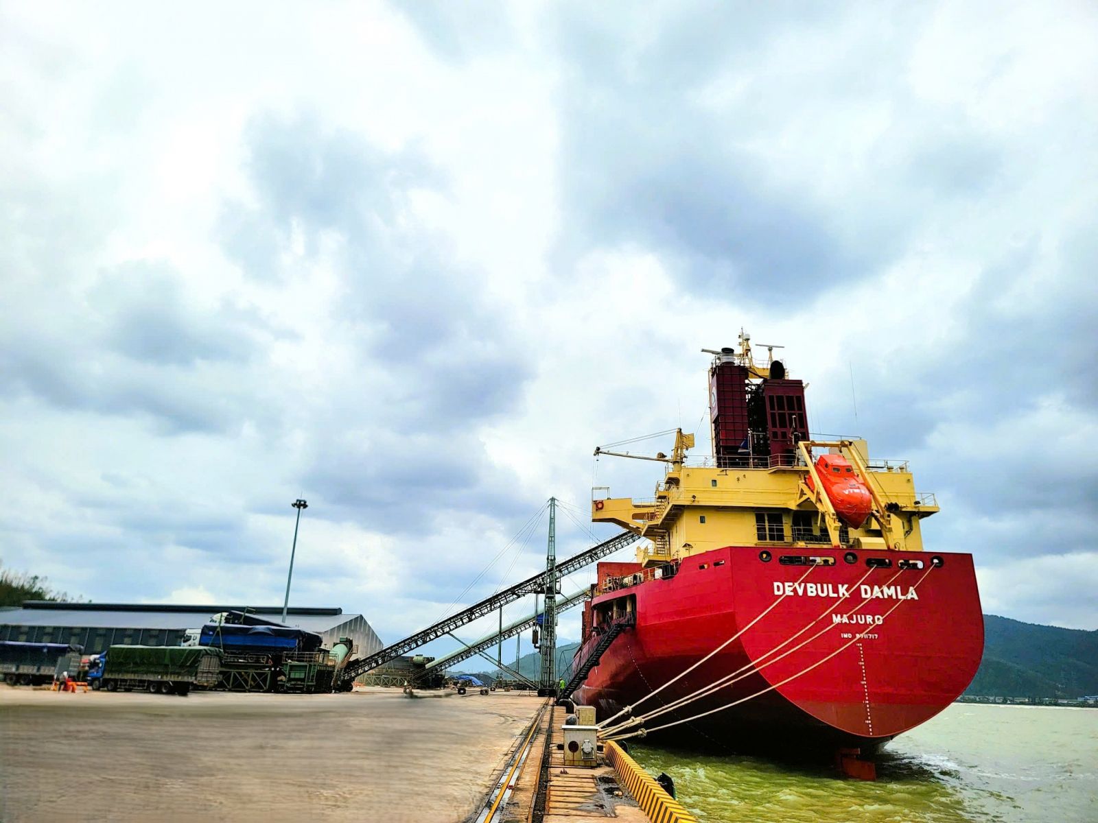 Ngày 20/11/2025, tại Cảng Quốc tế Lào - Việt (VLP) đang triển khai công tác xếp dỡ hàng hóa bằng băng tải cho tàu DEVBULK DAMLA (Quốc tịch MARSHALL với chiều dài 177,85 m và trọng tải 37.322 DWT).